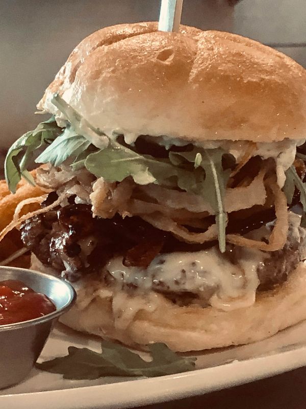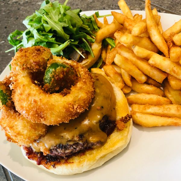 Hand smashed patty, bacon onion jam, house sauce, melted brie, roasted jalapeno aioli