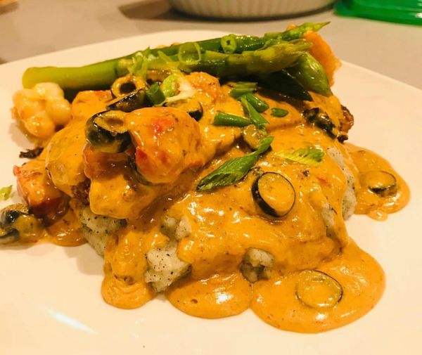 Boneless chicken, mild saffron cashew creamy sauce, basmati rice, naan bread
